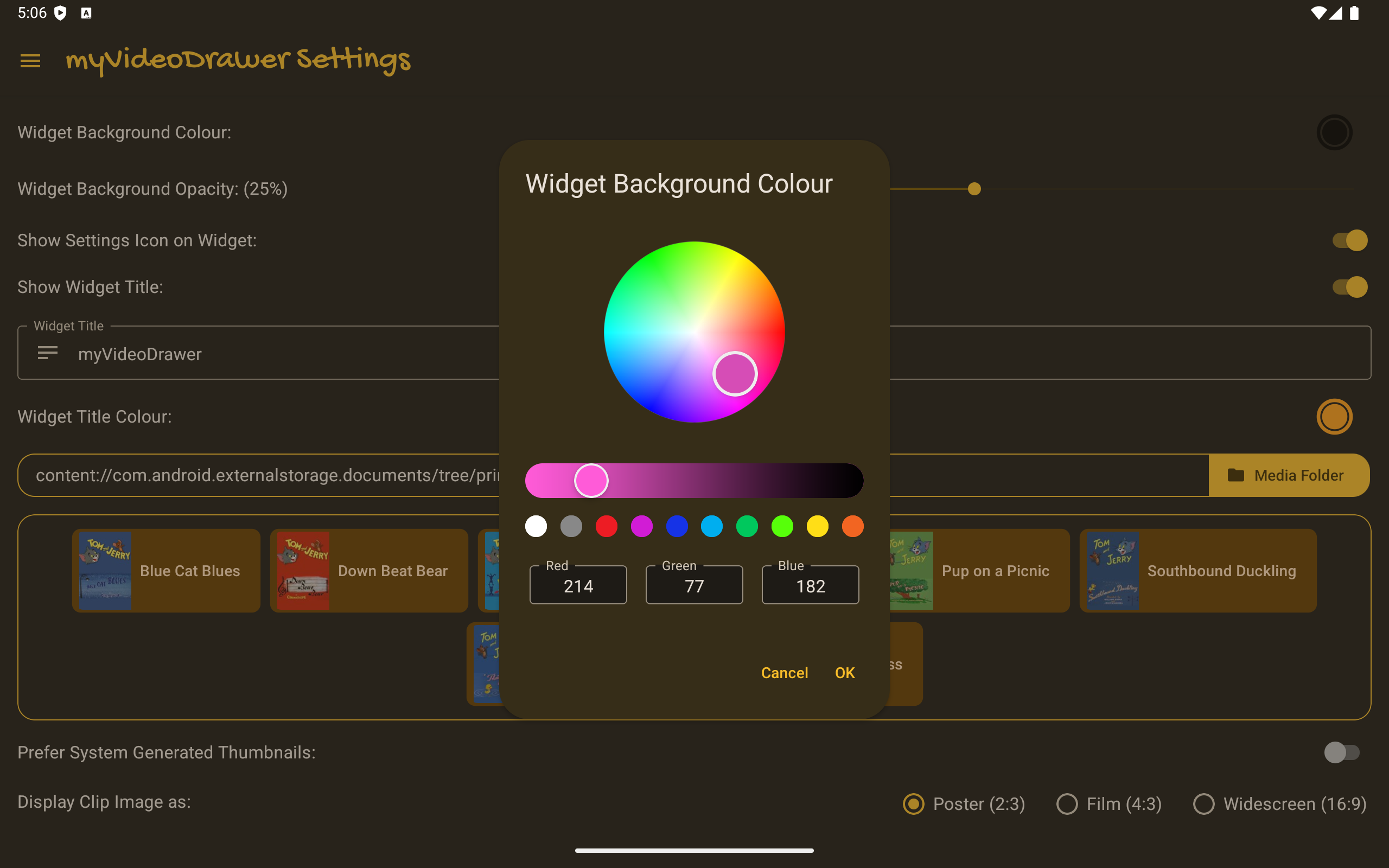 Once added, the widget will display the videos from the selected media folder. If you change the media folder in the settings app, the widget will update automatically.